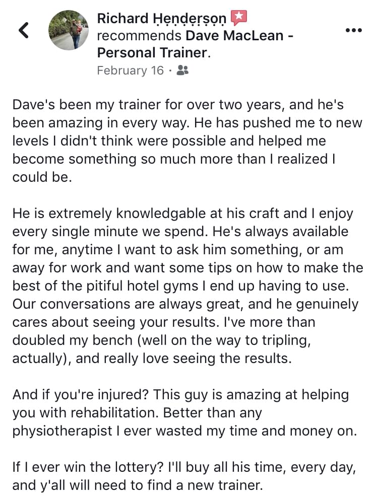 I got certified as a Personal Trainer in 2008 and made the decision early on to become the best trainer I could, so I hired the best personal trainer I could find to coach me.